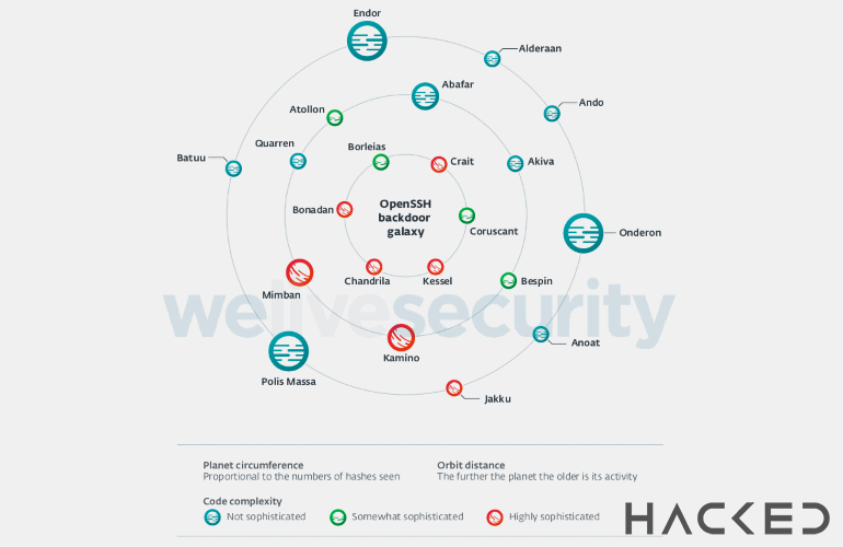 ESET在过去几年中一直使用相同的40个文件签名列表来搜索这些恶意软件家族。其中原始形态的40个恶意软件此前从未被发现过,可能是因为被创造者融入在其他恶意软件中,但里面21个被木马感染的OpenSSH后门在随后几年仍然被继续使用。