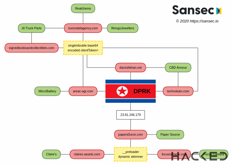 Sansec的研究人员发现,活动与之前的朝鲜黑客行动之间存在联系。证据指向Hidden Cobra,又名Lazarus集团,该集团是2014年索尼影业黑客攻击、2016年孟加拉国银行抢劫案的幕后黑手,并被广泛认为是WannaCry恶意软件的始作俑者。
