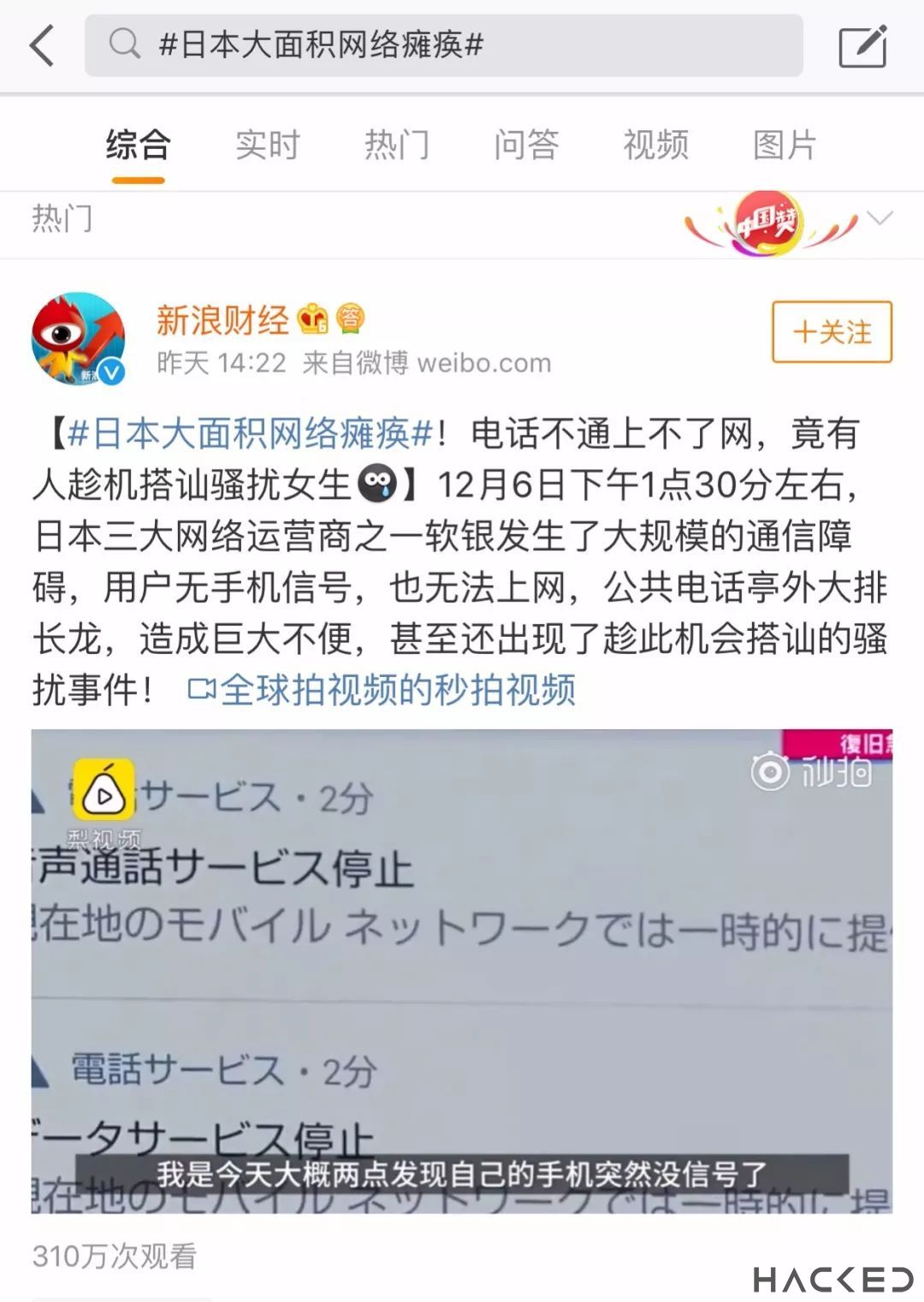 新闻概要 12月6日下午1点30分左右,日本三大网络运营商之一软银发生了大规模的通信障碍,用户无手机信号,也无法上网,公共电话亭外大排长龙,造成巨大不便,甚至还出现了趁此机会搭讪的骚扰事件!